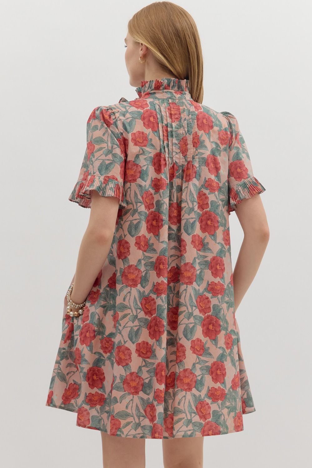 Elevate your wardrobe with this charming floral print mini dress, designed for effortless style and comfort. The delicate pintuck pleats and ruffle accents add dimension and movement, while practical side pockets keep your essentials within reach. Crafted from lightweight woven fabric with a full lining, this dress offers coverage without bulk, making it perfect for warm weather outings. The non-sheer construction ensures confidence with every wear. Whether you're heading to brunch or a casual gathering, this versatile piece transitions seamlessly from day to night.